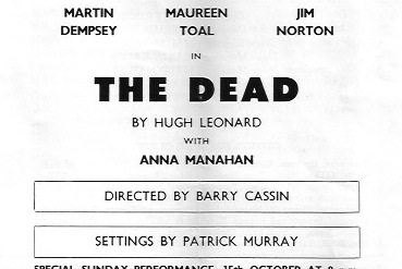 Following his success in adapting Joyce for the stage in Stephen D. in 1962, Hugh Leonard went on to adapt seven of Joyce’s Dubliners stories for the stage in the full-length Dublin One (1963) and the one-act The Dead (1967).